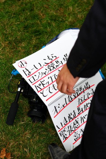La joie de M.Julian Smart, l'entraîneur de Djainka des Forges s'imposent dans le Prix Qatar Arabian World Cup Gr.1 - Jockey Christophe-Patrice Lemaire