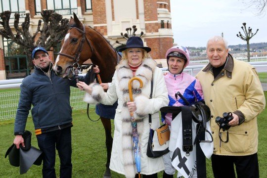 Joli et performant, Majestic Mount en compagnie de ses éleveurs propriétaires Mr et Mme Graham Robinson, a couru 15 courses pour 4 victoires et 11 places