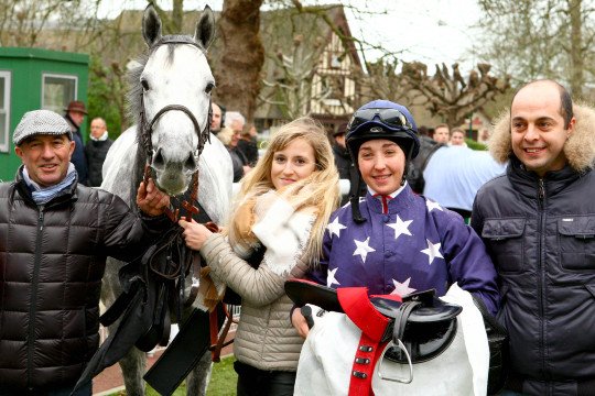 Lilly Le Pemp en selle sur Sept Extra s'imposent à la lutte pour l'entraînement de Mme Carole Dufrèche