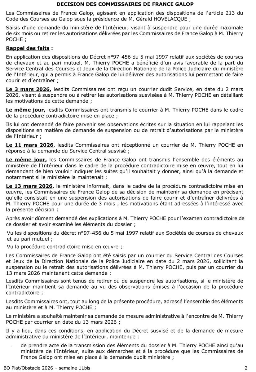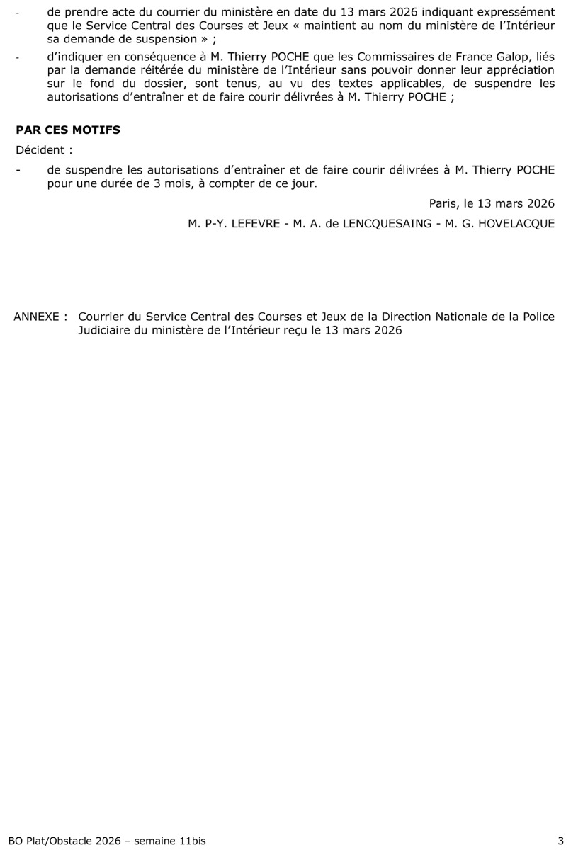 France Galop : Thierry Poché suspendu 3 mois