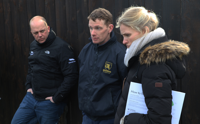Nicolas Bertran de Balanda en compagnie de Paul Cashman et Amanda Zetterholm à Glenview Stud lors de l'Irish Stallion Trail en janier 2017.