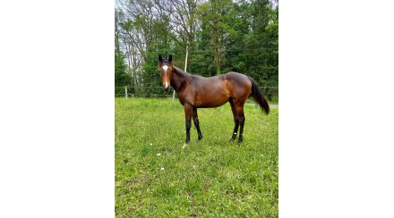 jument de 3ans BAI à l'entrainement CHEZ Mme HEBRARD à DRAGEY suit son programme gentiment à gagner son MAIDEN