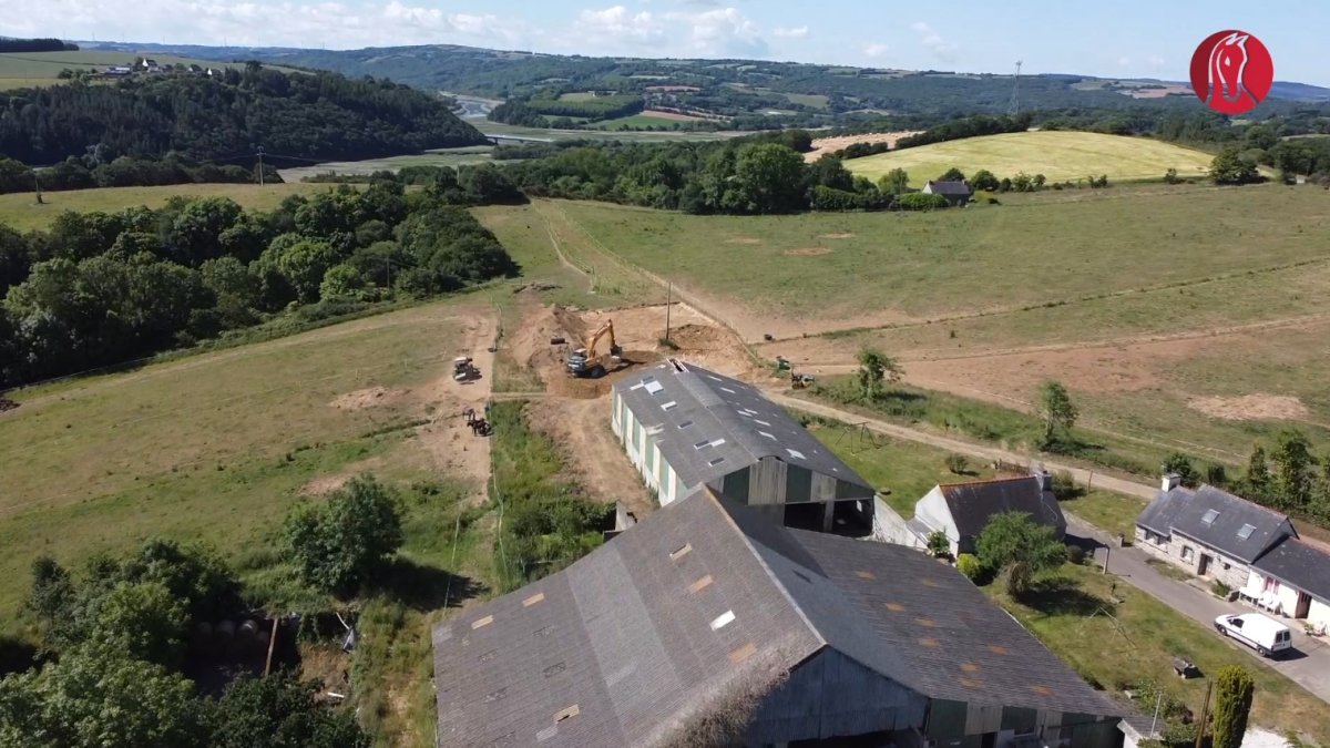 Les pairies accueillent déjà des chevaux. mais tout reste à faire dans les bâtisses. Pour l'instant, sur ce domaine très vallonné, il s'agit de terrasser une plate-forme pour y implanter l'aire de présentation et la buvette, et d'aménager un des 2 bâtiments pour accueillir les foals. C'estt la 1ère phase de travaux dont l'objectif est de transformer la ferme laitière en haras d'élevage et de services capable d'accueillir des étalons.