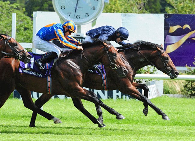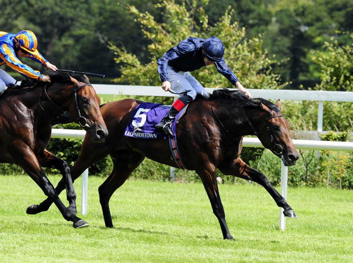 Military Style, côté corde, lors de sa victoire à 2 ans dans les Tyros Stakes (Gr.3) de Leopardstown, en Irlande (© Racingfotos.com)