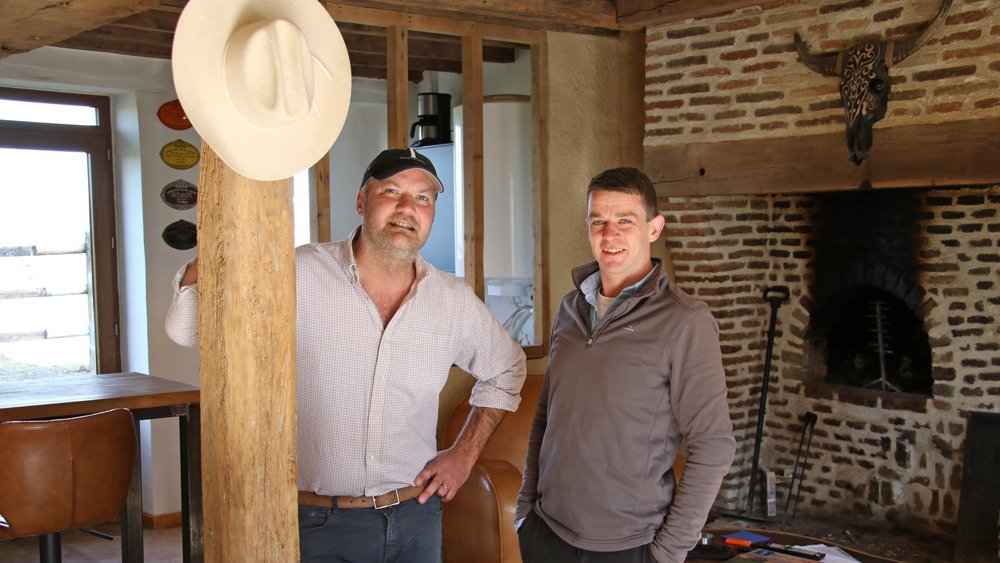 Bertrand de Soultrait en compagnie de Conor Flanelly, débourreur installé dans la structure du Haras de Toury.