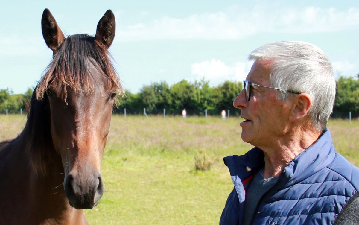Claude Pestour, au côté d'un de ses yearlings, à Sartilly dans la Manche.