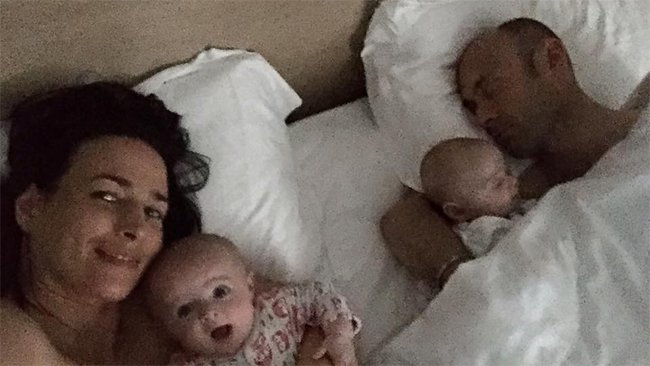 Emilie devait sentir qu'il fallait immortaliser la journée du 4 juin dès sa 1e heure...Elle fait un selfie à 4, avec son mari encore dans les bras de morphées et les jumelles âgées de 4 mois. Le soir, elle se couchera avec 4...victoires à son compteur de propriétaire !