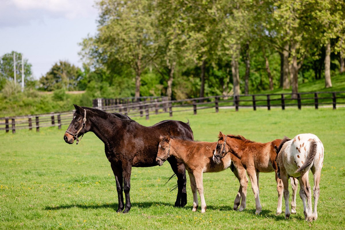 Quelques foals issus des nourrices des Aga Khan Studs, sevrés, mais en bonne compagnie, car aux côtés de la matrone Zarkasha, la mère des excellents Zarkava, Zarkandar et autre Zarshana (© Twitter Aga Khan Studs)