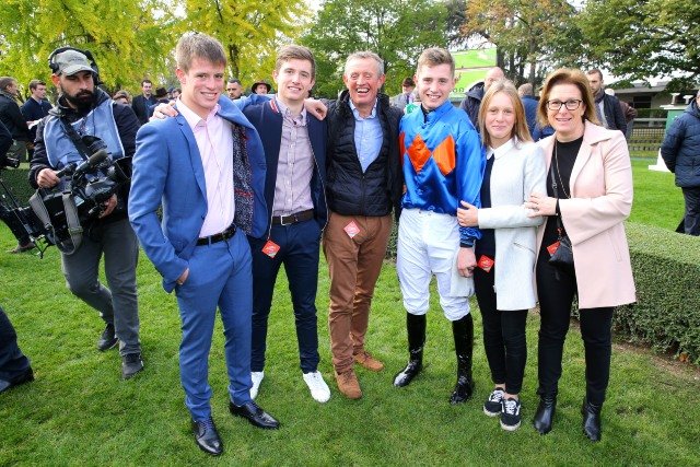 Christophe Dubourg, entouré de son épouse, Stéphanie, et de leurs enfants, Kilian, Baptiste, Pierre et Earine, les éleveurs d'Energumene (© APRH)