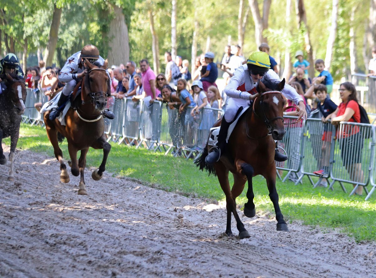 Charles de Tarragon, ici lors de l'une de ses victoires en course de poneys, paré des couleurs du Haras de Maulepaire