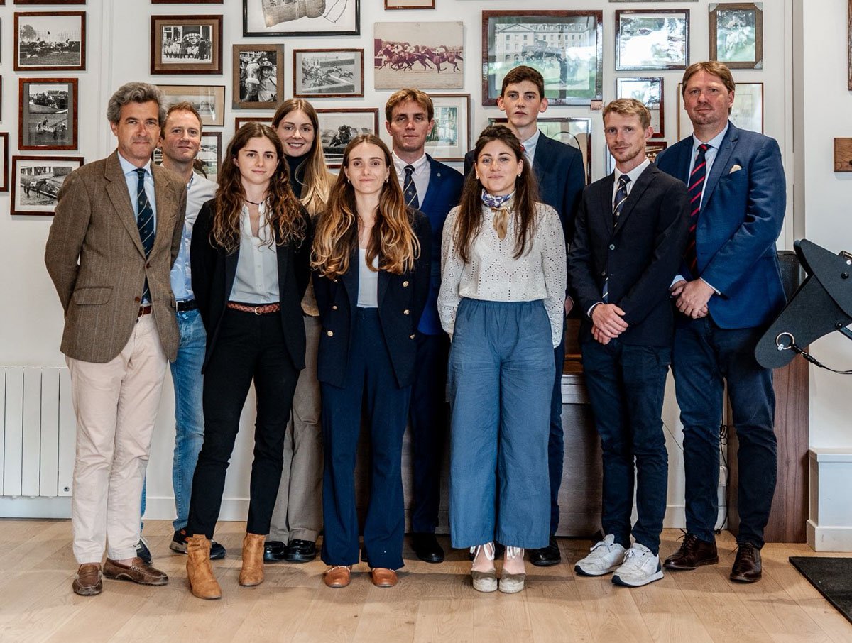 La "photo de classe" de la 88ème promotion du Club des Gentlemen-Riders & Cavalières, avec notamment, dépassant de la mêlée, Charles de Tarragon... et Gabriel Leenders, qui a lui aussi compté, à l'époque, parmi les "géants" du vestiaire avec son presque double mètre (© Facebook Club des Gentlemen-Riders & Cavalières)