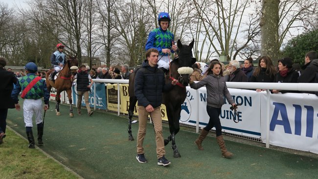 " On villageait avec Guy. On l'a acheté pas cher, mais tard..." Quand Claude Ventrou, angevin rabatteur de foals pour Guy Chérel mais aussi Philippe Peltier, prononce cette phrase, cela signifie qu'il passait une journée à se promener sur les petites route du Haut Anjou pour voir des poulains, pendant l'été 2009, et que les deux compères ont fini leur mission dans l'élevage de Jean-Claude Fleury, à la Gachetière dans le patelin d'Angrie à côté de Vern d'Anjou, soit à un quart d'heure du Lion d'Angers. Mais que la bataille a été rude. Sans doute les acheteurs ne proposaient pas assez du point de vue du vendeurs. Alors il a fallu causer autour d'un verre qui s'est rempli puis vidé puis rempli puis vidé jusqu'à 2 heures du matin. L'affaire s'est faite et 6 ans plus tard, le petit Vent Sombre a grandi pour devenir à 6 ans le lauréat de l'édition 2015 du Grand Prix de Pau (Gr.3), une épreuve dont il avait déjà conclu 2e l'an dernier. Il devance son compagnon de couleurs Valban, un autre AQPS mais lui nivernais, entrainé par Philippe Peltier.