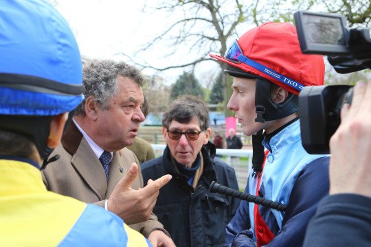 Les sourires sont encore plus éclatants après l'épreuve ! Paul Nataf (à droite) peut être heureux de son achat d'octobre 2014, aux ventes Arqana, pour 15.000 . Les couleurs de M.et Mme Jacques Cygler seront très en vue le 15 mai prochain.