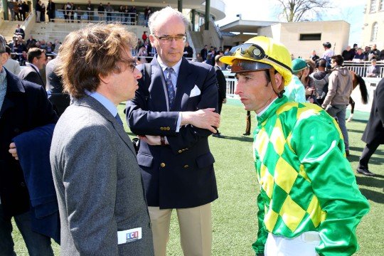 Au même moment, dans un autre style, Guillaume Macaire donne les dernières consignes à ses jockeys !