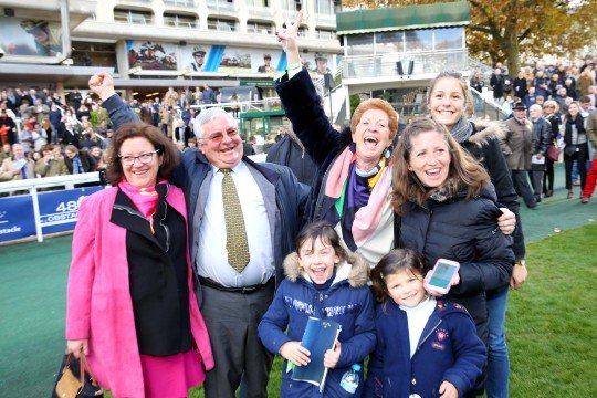 La famille Pacault en joie - Le 1er Gr.1 de leur carrière pour l'entraîneur Isabelle Pacault, le jockey Stéphane Paillard et le hongre Carriacou ! Ils ont fait un coup de maître !!