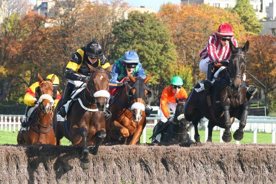 Au saut du dernier obstacle du Grand Steeple-Chase Junior