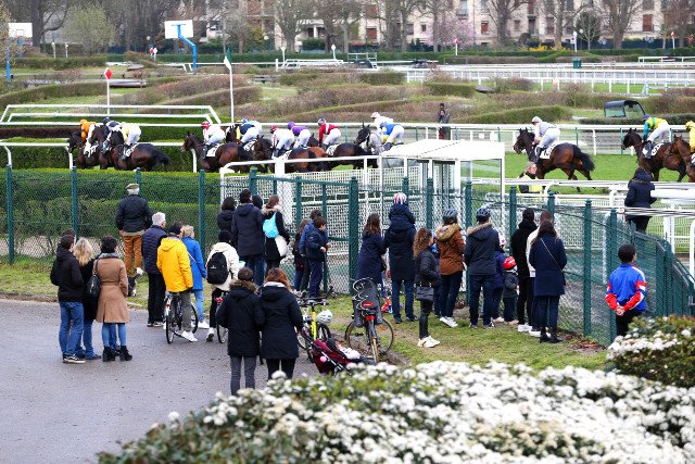 A l'extérieur des grilles, quelques spectateurs suivent les courses.