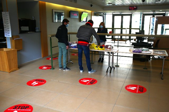 Une nouvelle signalétique apparaît dans la salle des balances, pour préserver tout le monde et s'assurer la continuité des courses