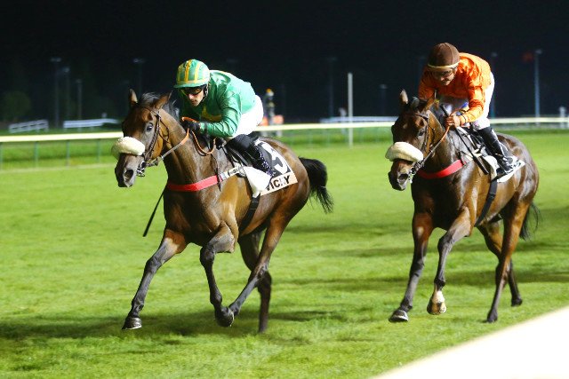 Jeudi à Longchamp : Dans le Grand Prix des Femmes Jockeys, Quinté +. Axelle Nico, en selle sur Golden Rajsa (Rajsaman), devance d'une tête Perrine Cheyer, associée à Gladys Senora (Anodin)