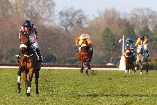 Buddy Banks impérial dans le Prix Duc d'Anjou. Monté par Arnaud Duchene, ils signent ensemble une victoire de 12 longueurs d'avance sur son dauphin ©APRH