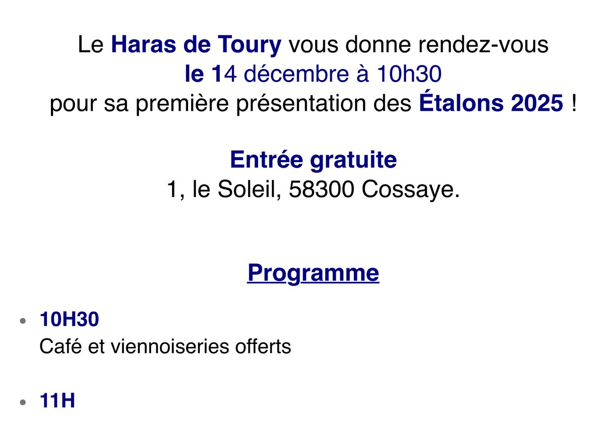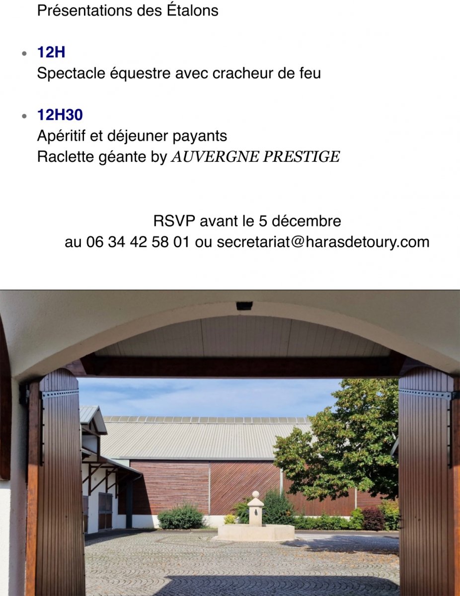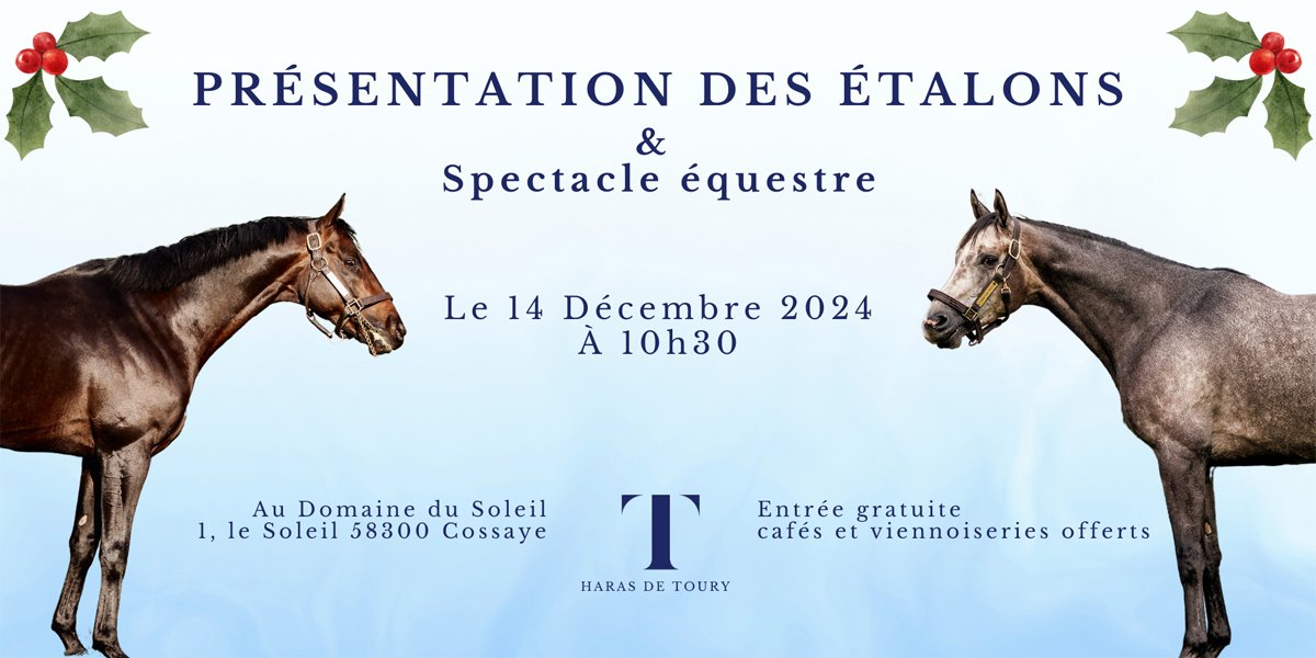 Le Haras de Toury vous invite pour sa présentation d'étalons le 14 décembre au Domaine du Soleil