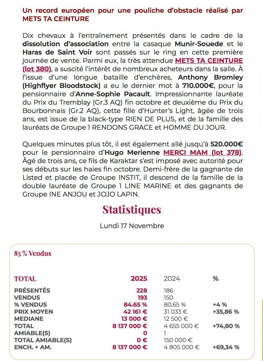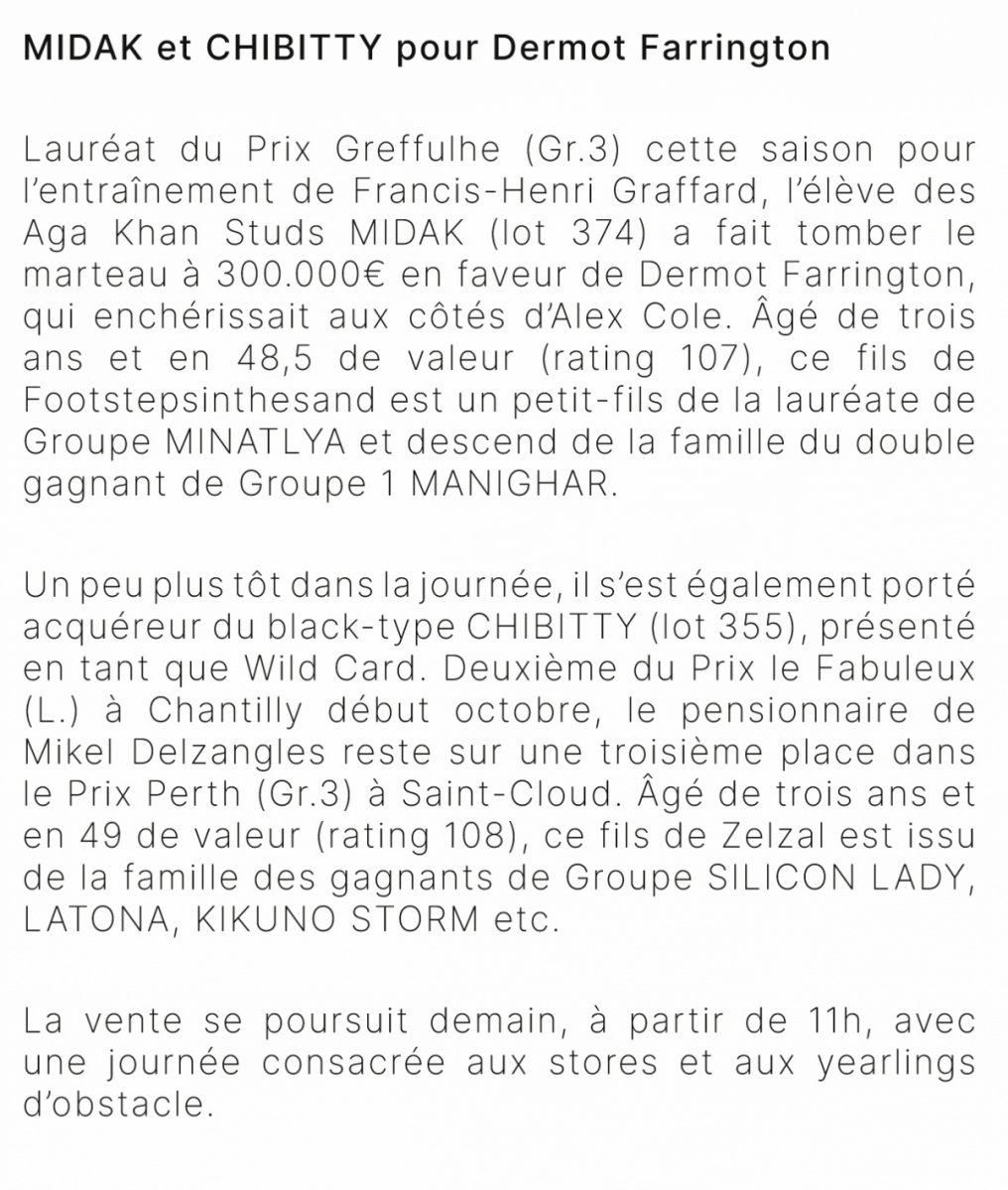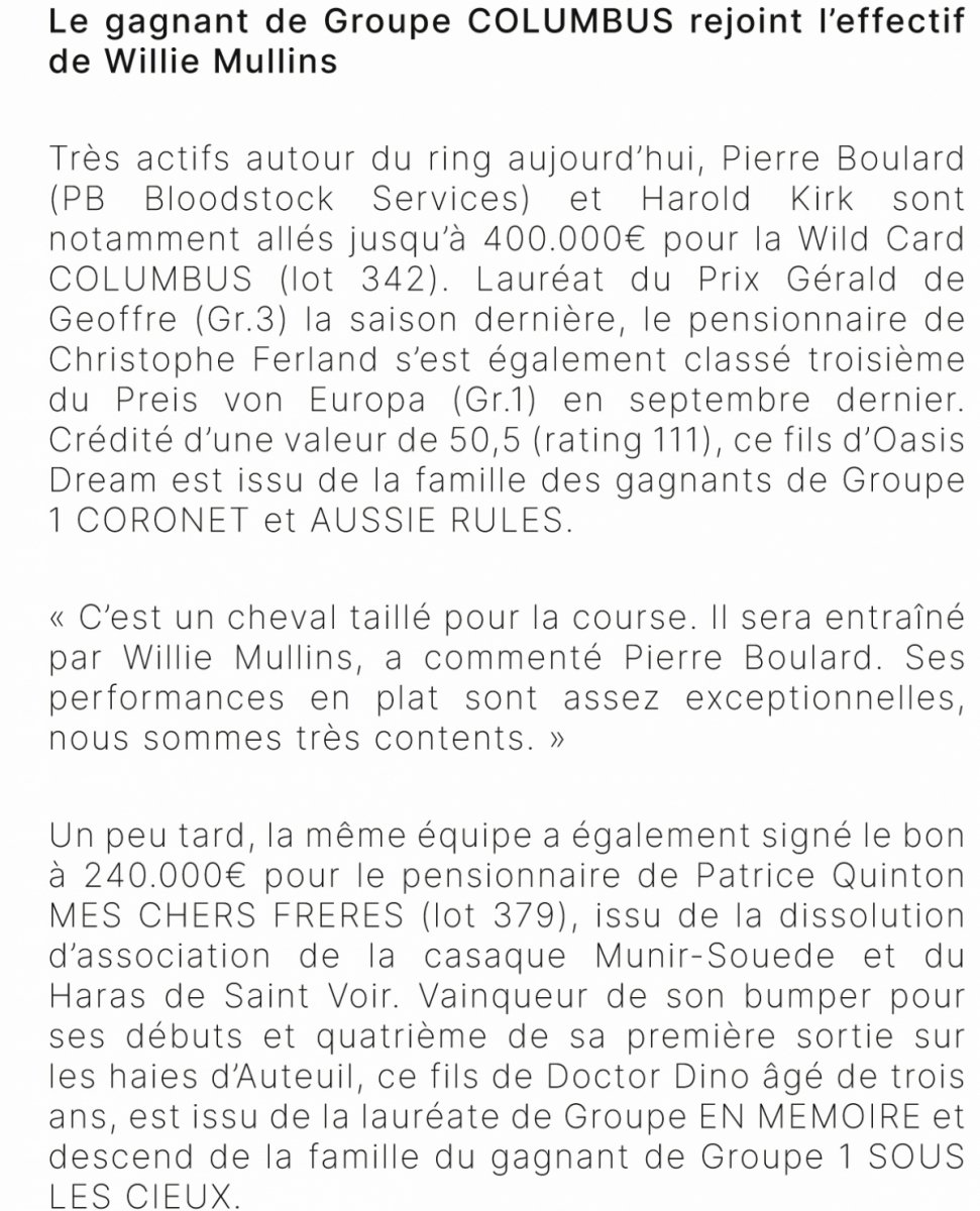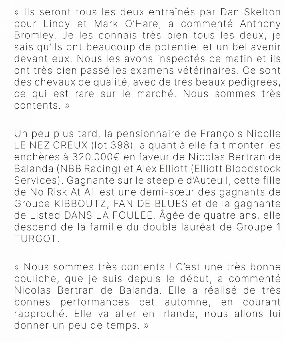L'homme de ces ventes Arqana de novembre est pour l'instant et de loin Anthony Bromley ! Pourquoi ? Puisqu'il s'est adjugé les 2 top-prices ! Deux chevaux...