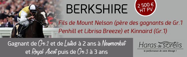 La saison du mercato des étalons n’est pas terminée et pour preuve, le Haras de Sorelis vient d’annoncer l’arrivée de l’excellent Berkshire, un gagnant de groupe s’il vous...