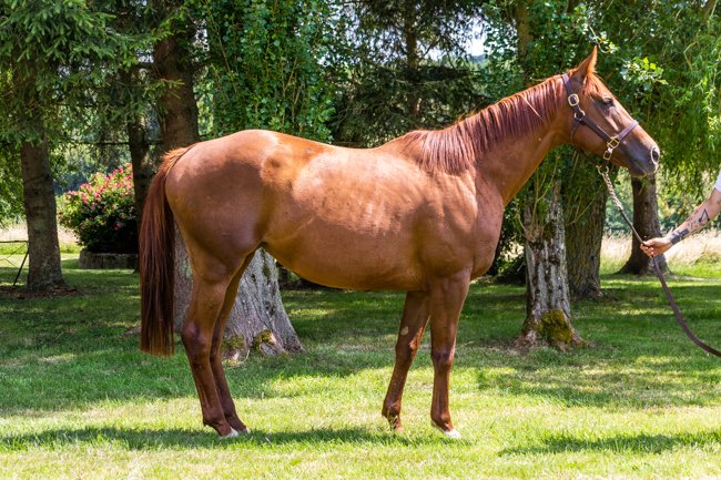 Fille de Vocatine (6 vict., Longchamp, Bordeaux, Compiègne, Chantilly). Soeur de La Goutte d'Or, La Madeleine (3e Gr.2), Quinze Vingts.