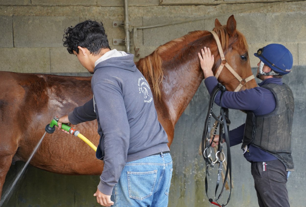 Une équipe de 3 cavaliers travaille pendant des journées continues. Philippe Hillairet s'occupe de chevaux venant de chez Arnaud Chaillé-Chaillé, François Nicolle, Guy Cherel, Deboisbrunet plus des éleveurs régionaux comme Karine Belluteau (Blue Soave, Simon in Blue, Algue de Lune) . Quand il a de la place, il peut aussi prendre des chevaux en soins ou au pré.