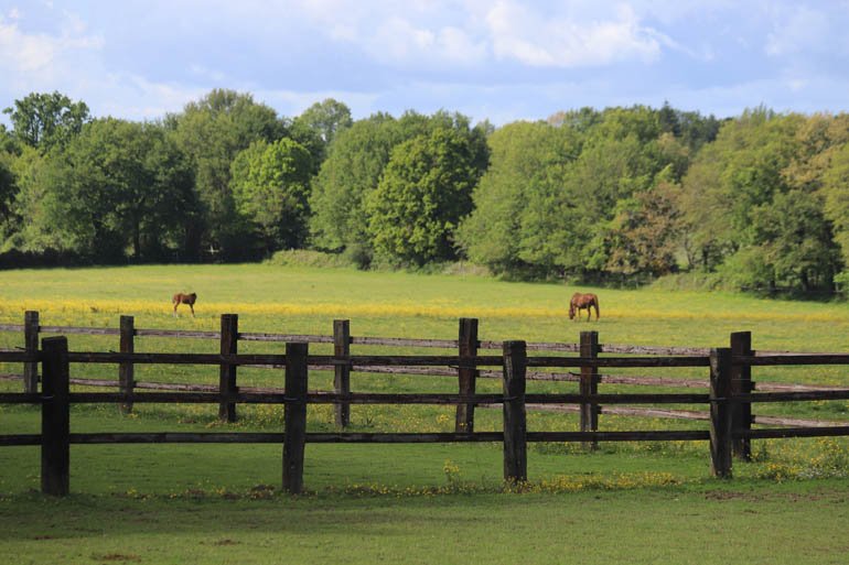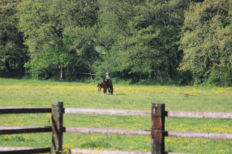 Prairies de 5 hectares, certaines avec grandes stabulations pour juments gestantes l’hiver et yearlings à la belle saison.