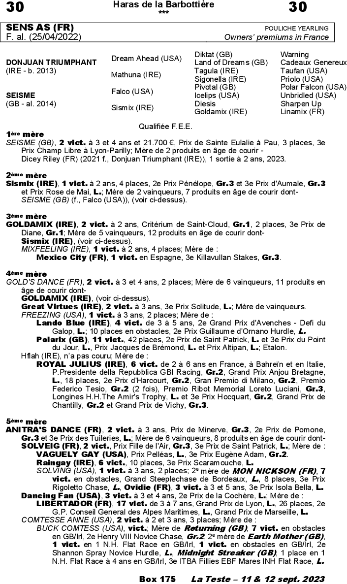 Vente de Yearlings - Osarus du 11/09/2023 au 12/09/2023 à La Teste